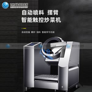 單邊座地式炒菜機,自動噴料、擺臂,智能觸控炒菜機。自動控溫、翻炒、加料、智能學習功能。一個廚師可操作多臺,每年節省50%人工成本用電比用氣在節省奮勇,省錢就等于賺錢